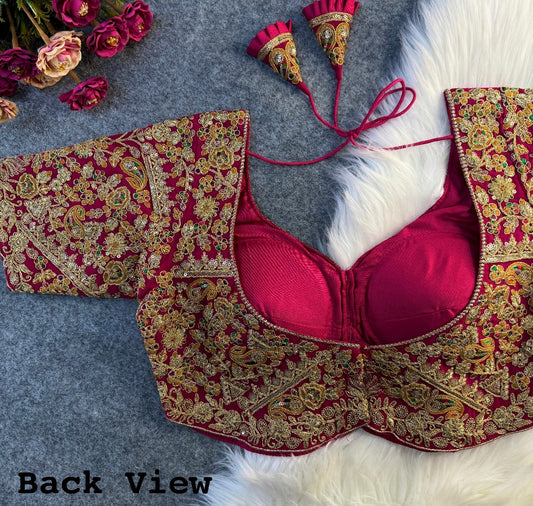 Heavy Codding Embroidery Blouse in Pure Italian Silk | Bridal Designer Blouse with Latkans