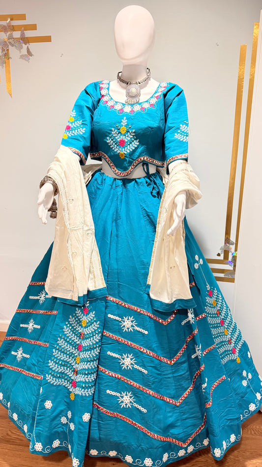 Teal Blue Embroidered Chaniya Choli – 6 Meter Flair