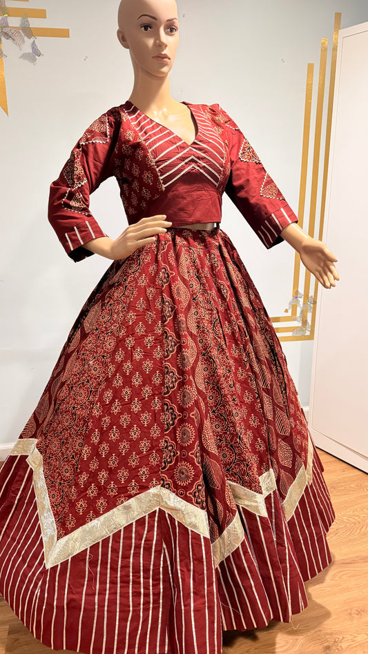 Pure Jam Cotton Multi-Layer Chaniya Choli with Gurjari Print