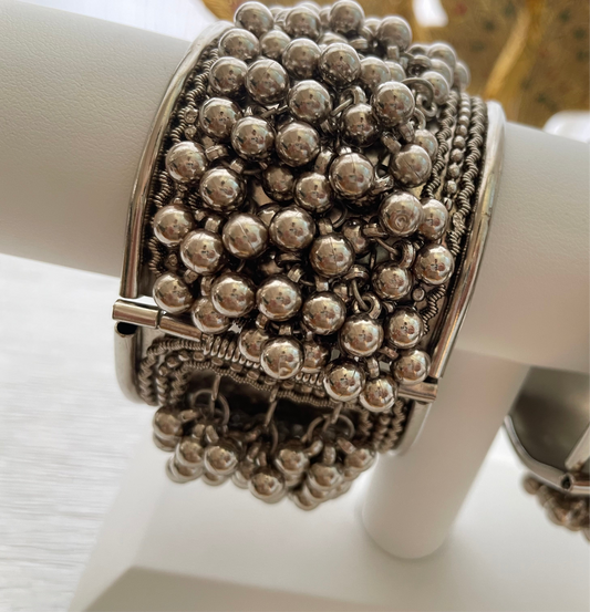 Oxidized Silver (imitation jewelry) Beaded Cuff Bracelet: Indian Boho Jewelry