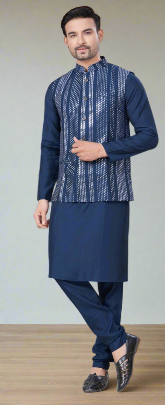 Kurta Jacket Set – A perfect fusion of traditional kurtas and structured jackets, designed for weddings, festive occasions, and cultural celebrations. These sets offer elegance with a modern edge, ensuring comfort and sophistication in every detail.
