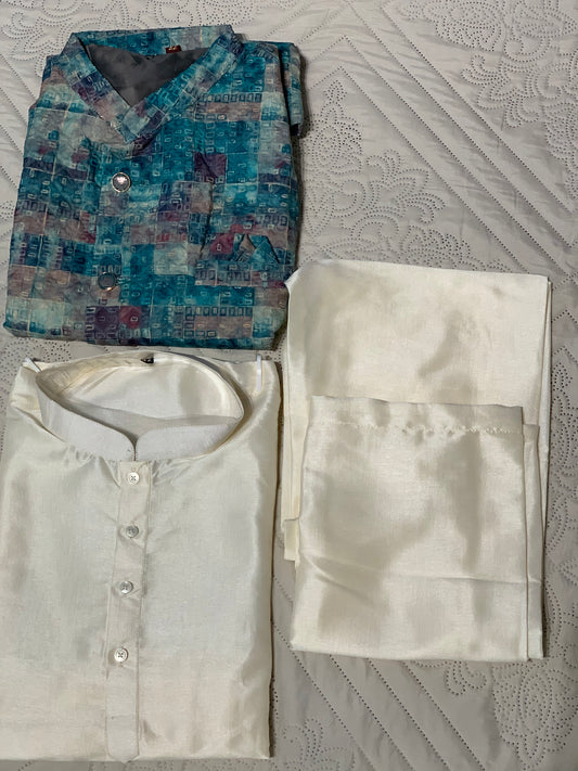 Men’s Cream Kurta Pajama Set with Multicolor Nehru Jacket – Festive & Wedding Wear
