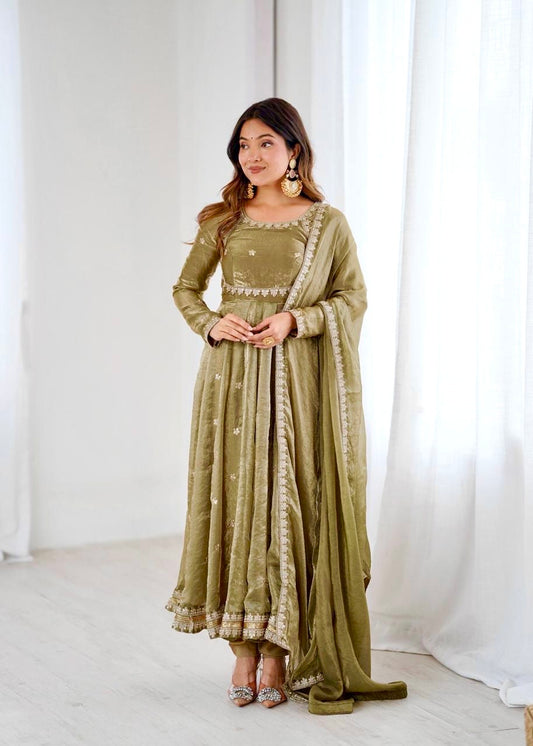 Designer Chinon Embroidered Suit Set with Dupatta – Festive Wear