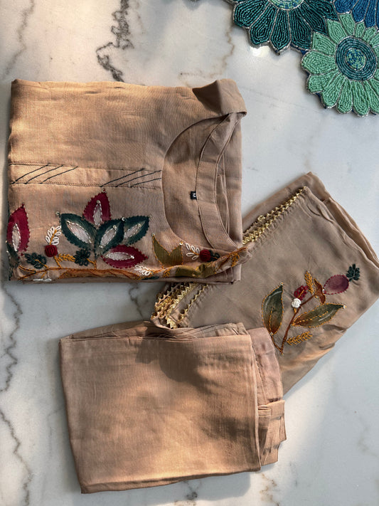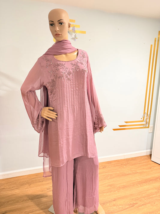 Mauve Embroidered Salwar Suit with Bead and Piping Work