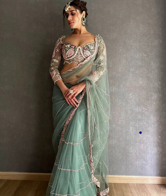 ✨ Premium Net Embellished Saree with Beautiful Embroidery,