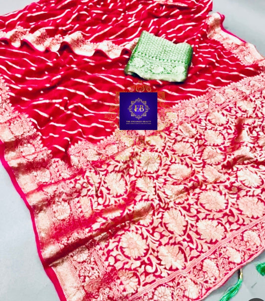Lahariya Zari Weaving Khadi Georgette Banarasi Saree – Fall & Pico Done