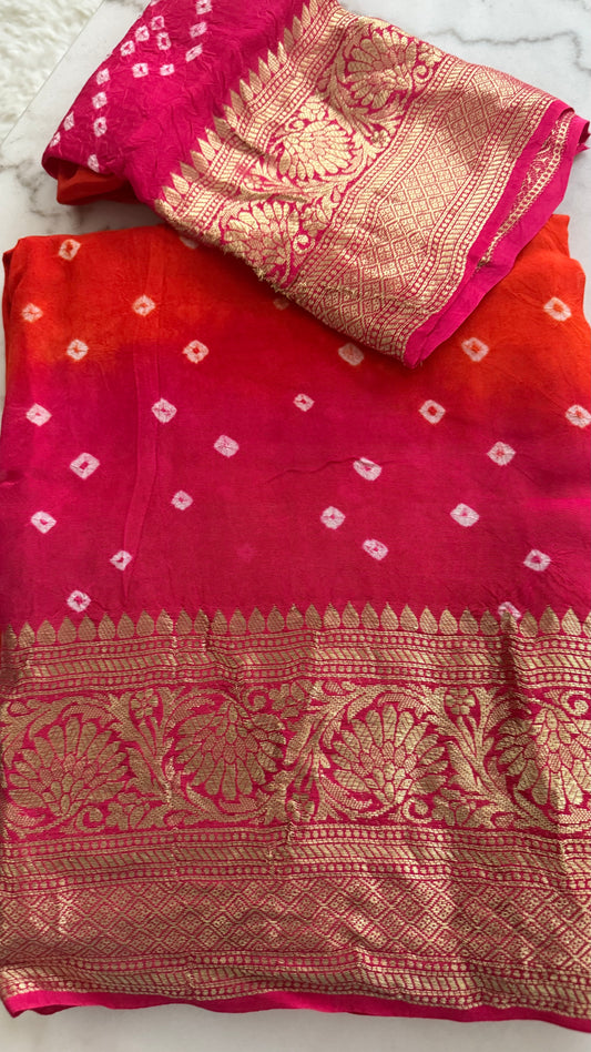 Multi color hand bandhej bandhani saree with Rich zari weaving work
