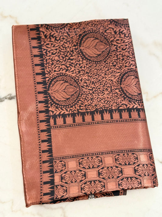 Regal Bloom Maroon & Gold Silk Saree with Green Accents