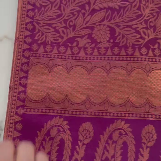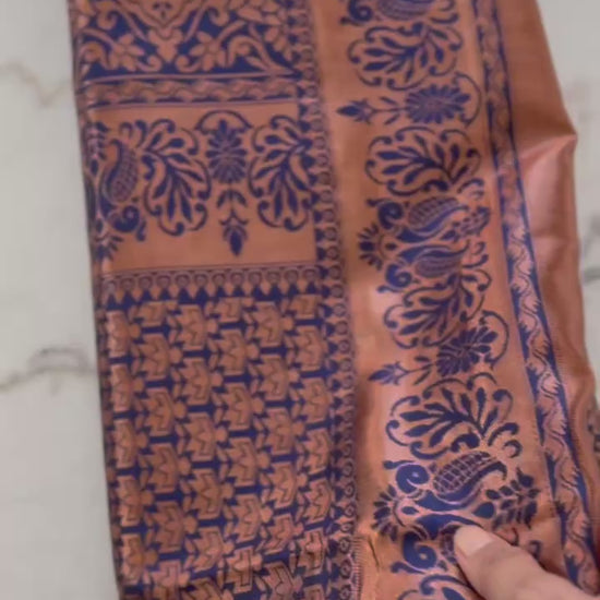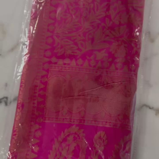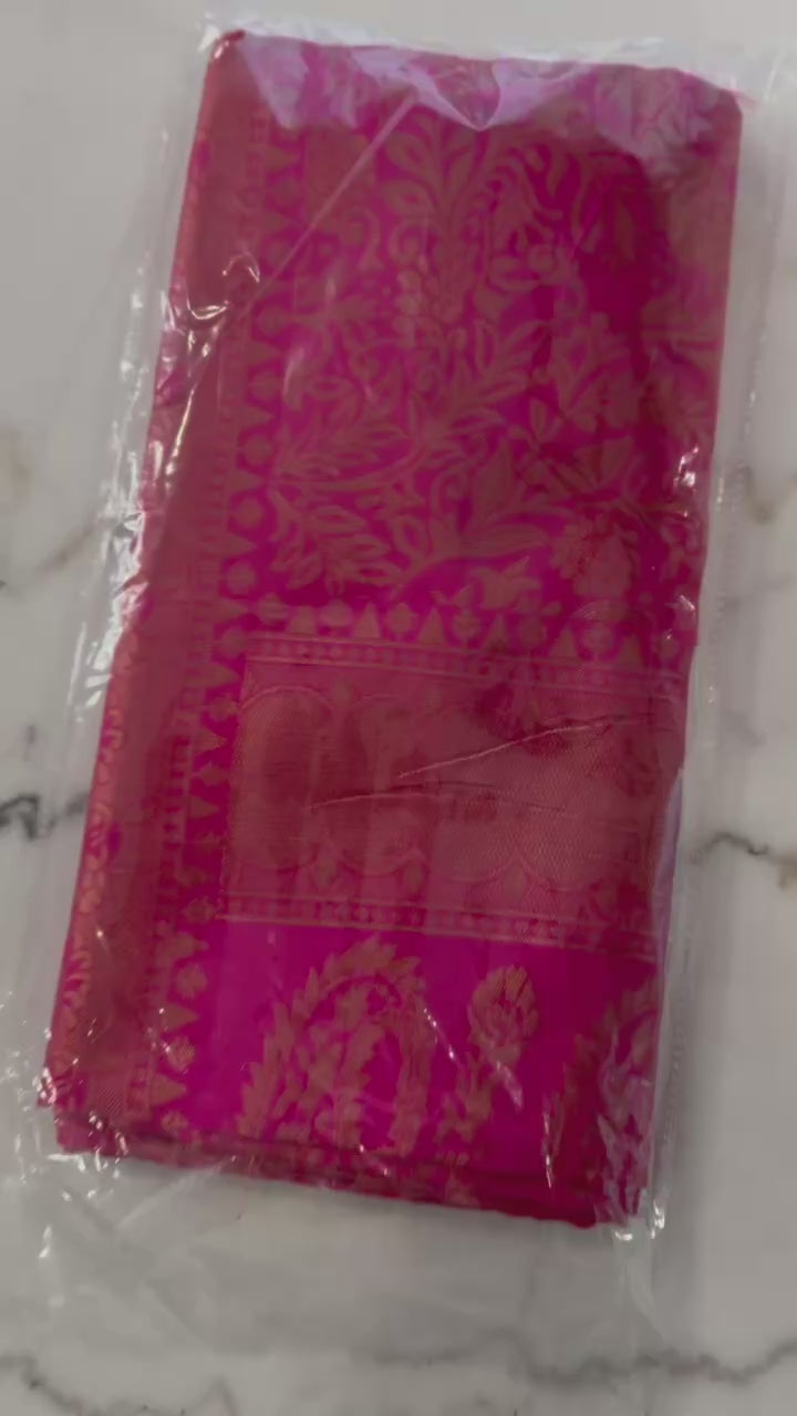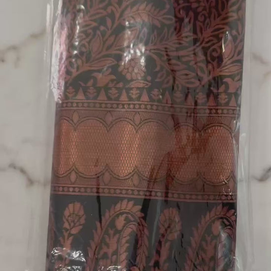 Add timeless elegance to your wardrobe with our Kanjivaram semi-silk sarees, featuring intricate rose gold zari work that radiates sophistication. Perfect for weddings, festive occasions, or special celebrations, these sarees are crafted for comfort and grace.