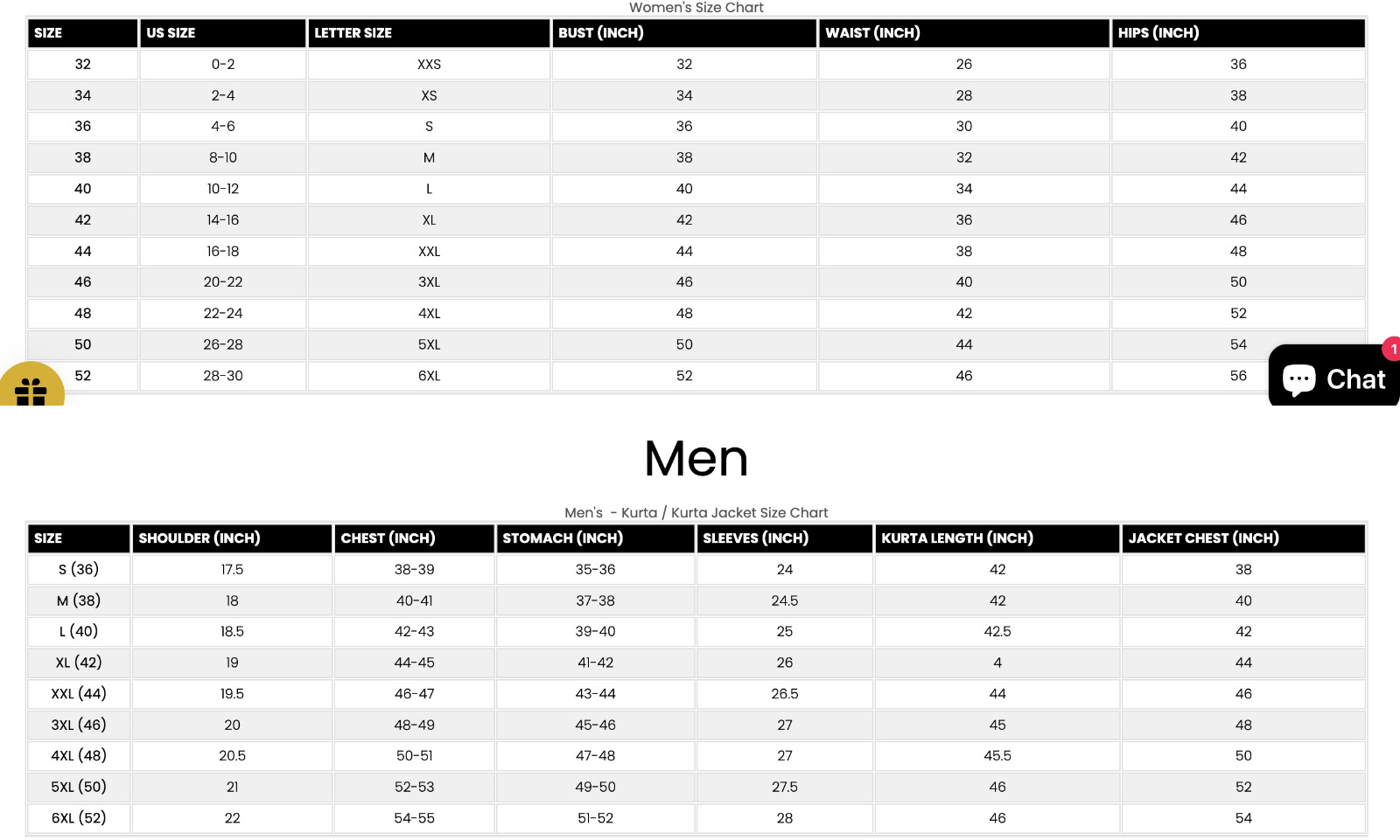 Each product page includes a size chart with measurements. We recommend comparing your body measurements to the chart for the best fit.