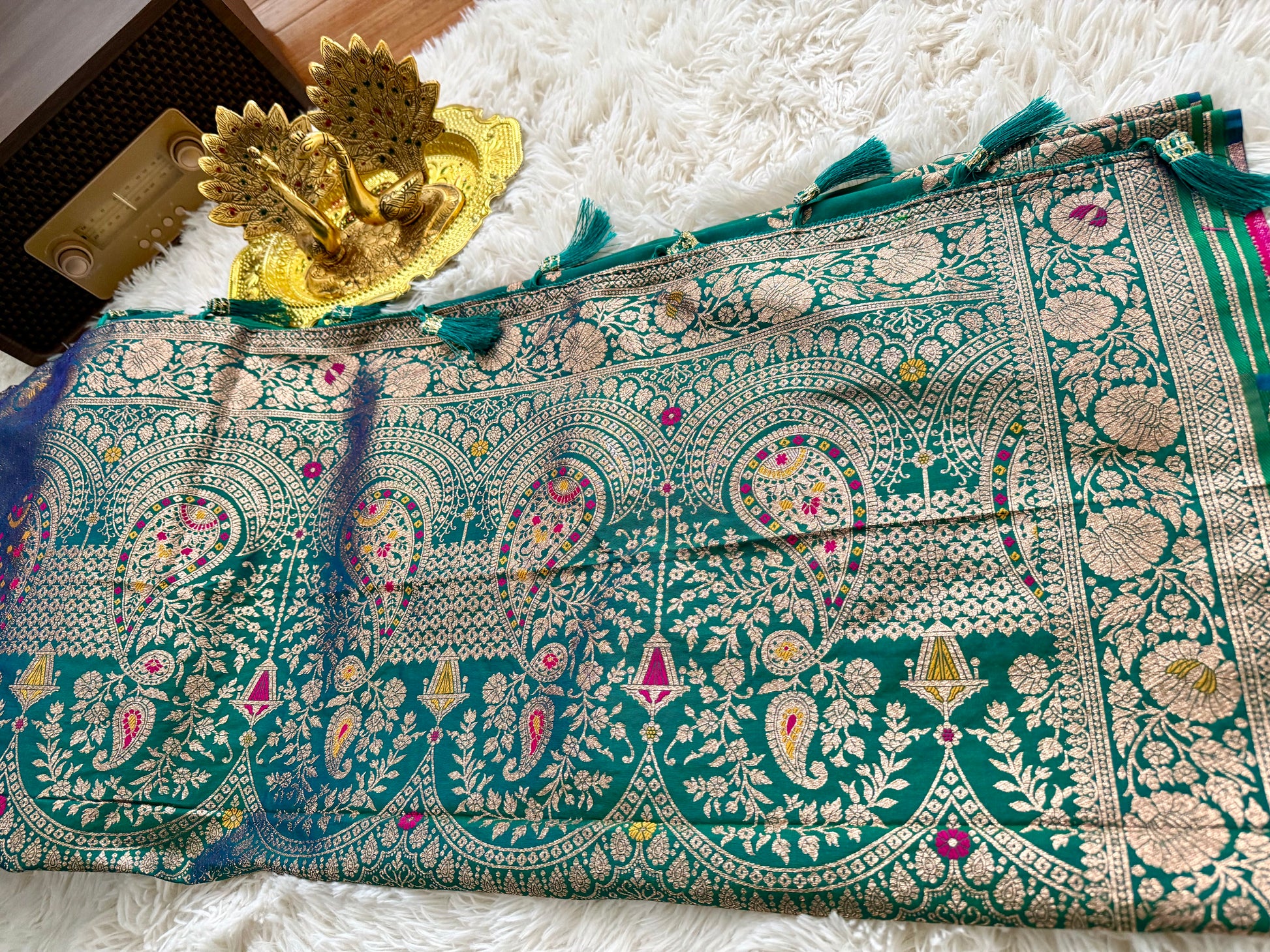 Dual Tone Rama Green Katan Banarasi Silk Saree – A Timeless Masterpiece ✨