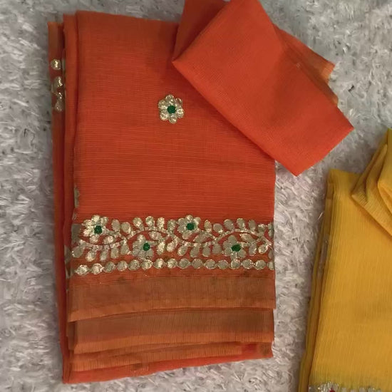 A Rajasthani Gota Patti work saree in cotton beautifully blends traditional elegance with comfort, making it ideal for festive wear, weddings, or everyday grace with a touch of royalty. Here's a detailed description: