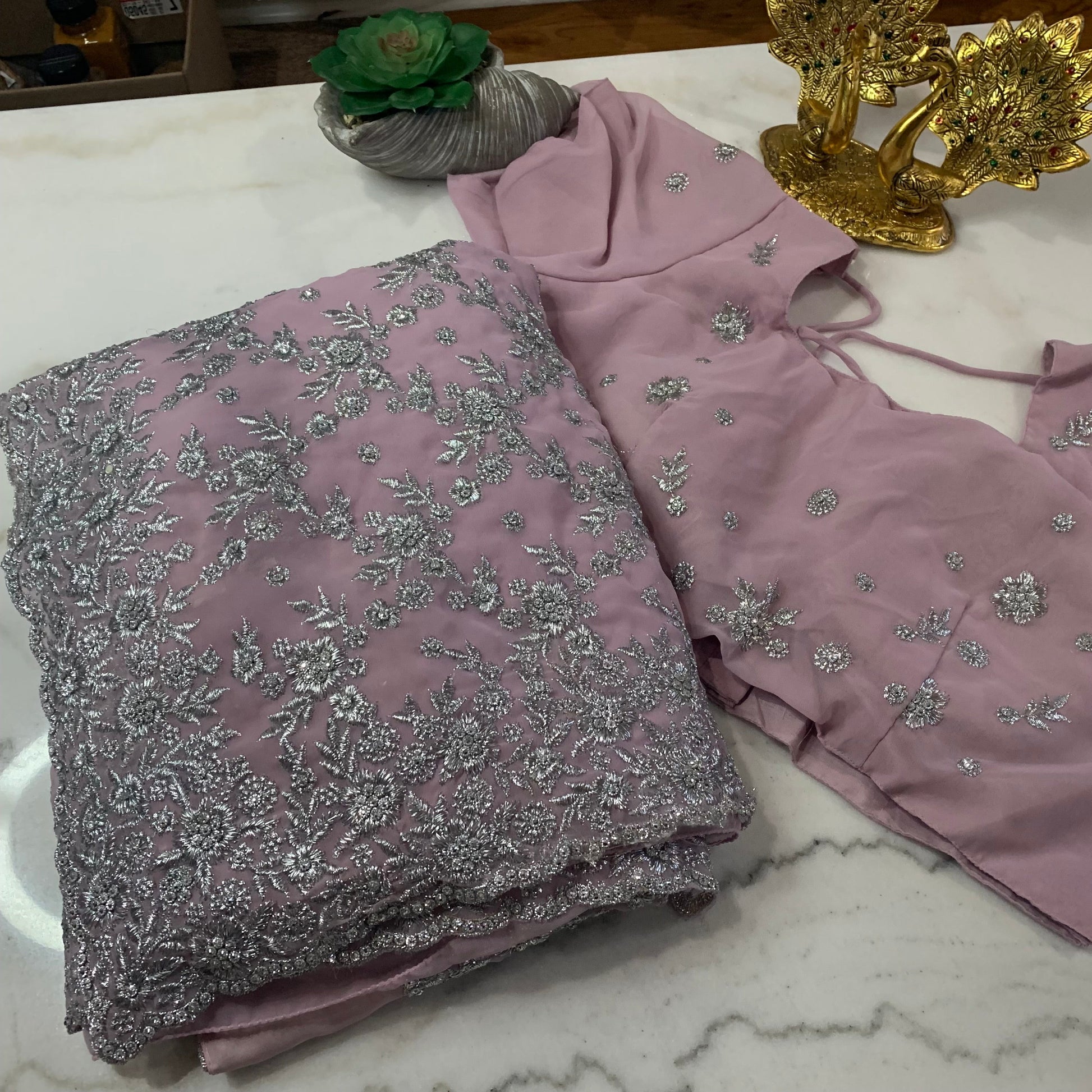 Turn heads and light up every room in our Party Wear Georgette Saree, designed for the modern woman who celebrates tradition with a glamorous twist. Crafted from lightweight, flowy georgette, this saree drapes effortlessly to accentuate your silhouette with grace and poise.