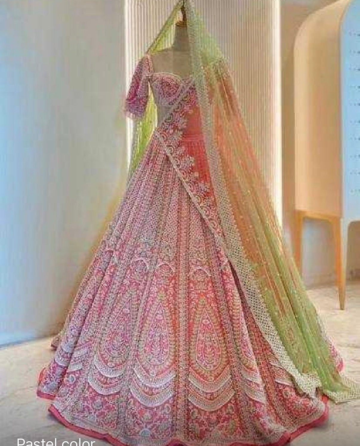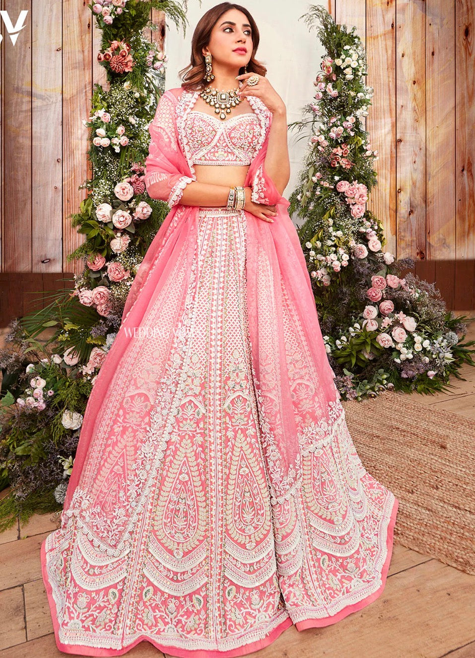 Jasmine Pink Bridal Lehenga Set – Hand-Embroidered Raw Silk with Double Dupattas