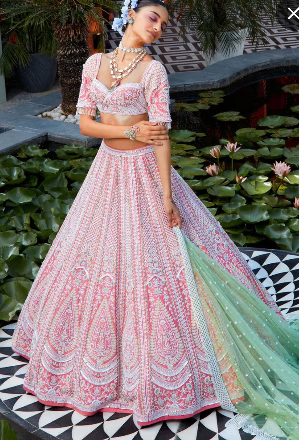- Two opulent dupattas – one in delicate soft net, the other in elegant silk organza, both lavishly embroidered