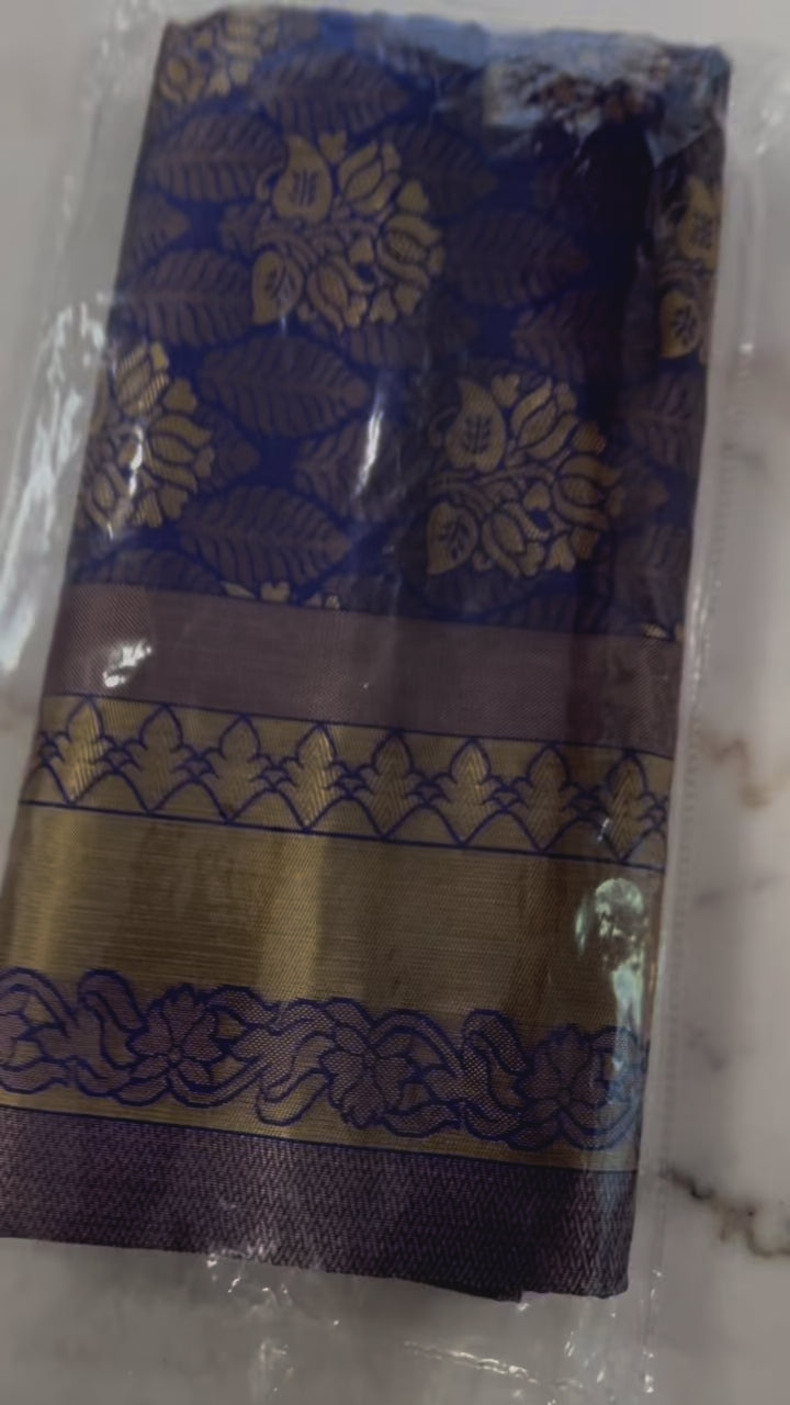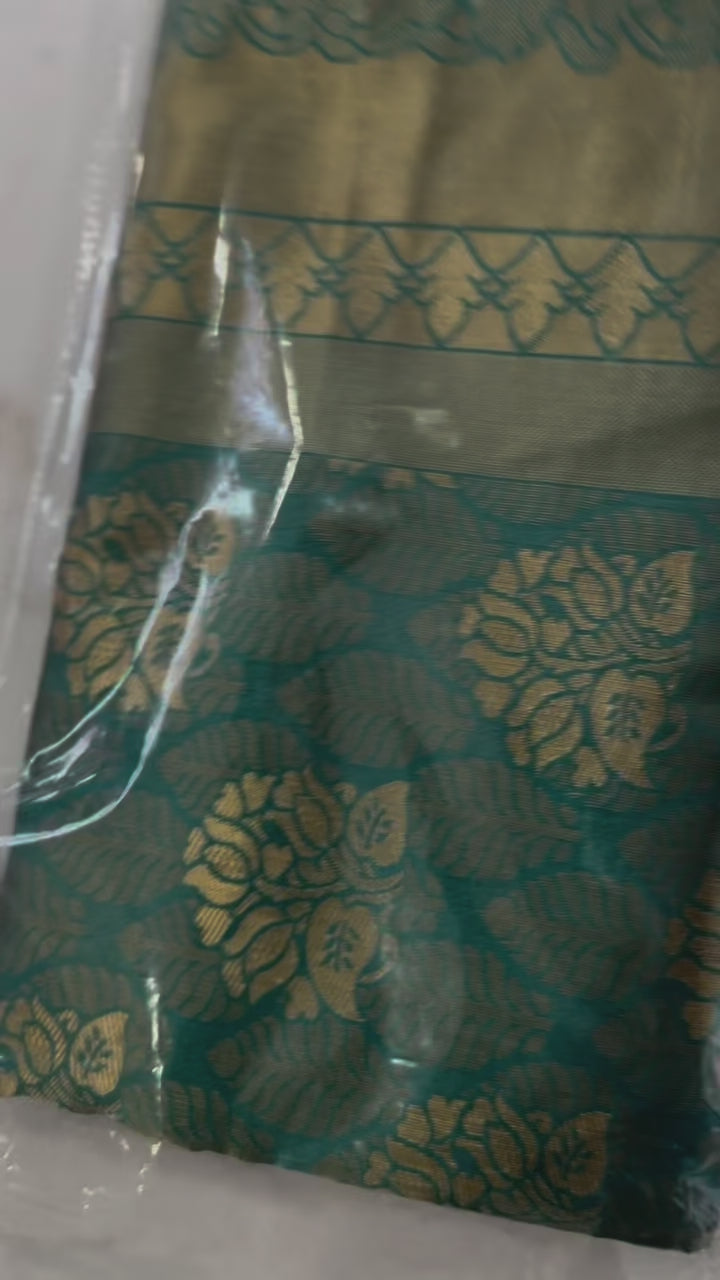 Kanjivaram Silk Saree – Blue, Green & Gold Elegance