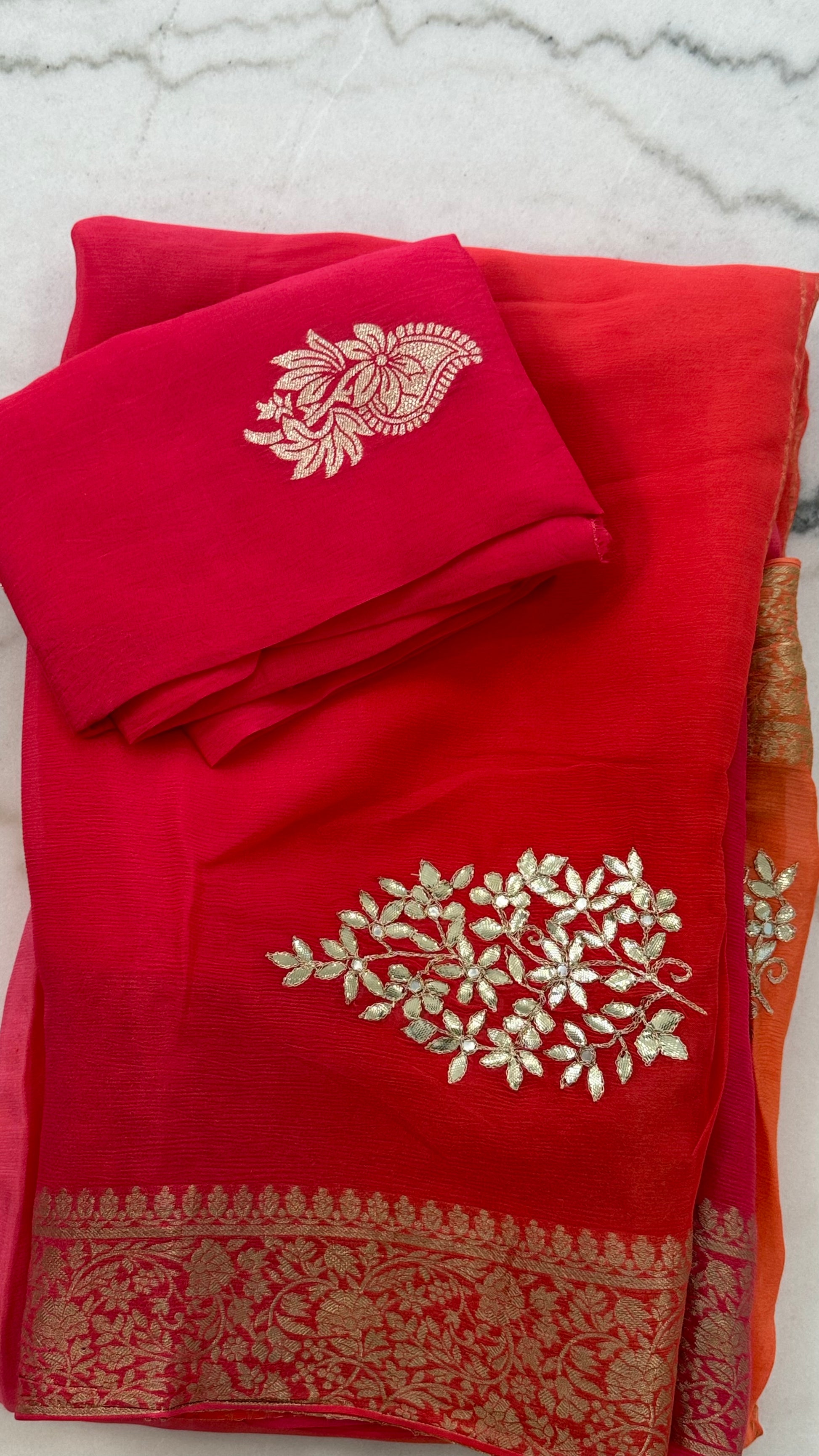 Limited Edition Pink-Orange Ombre Georgette Saree with Gota Patti Work