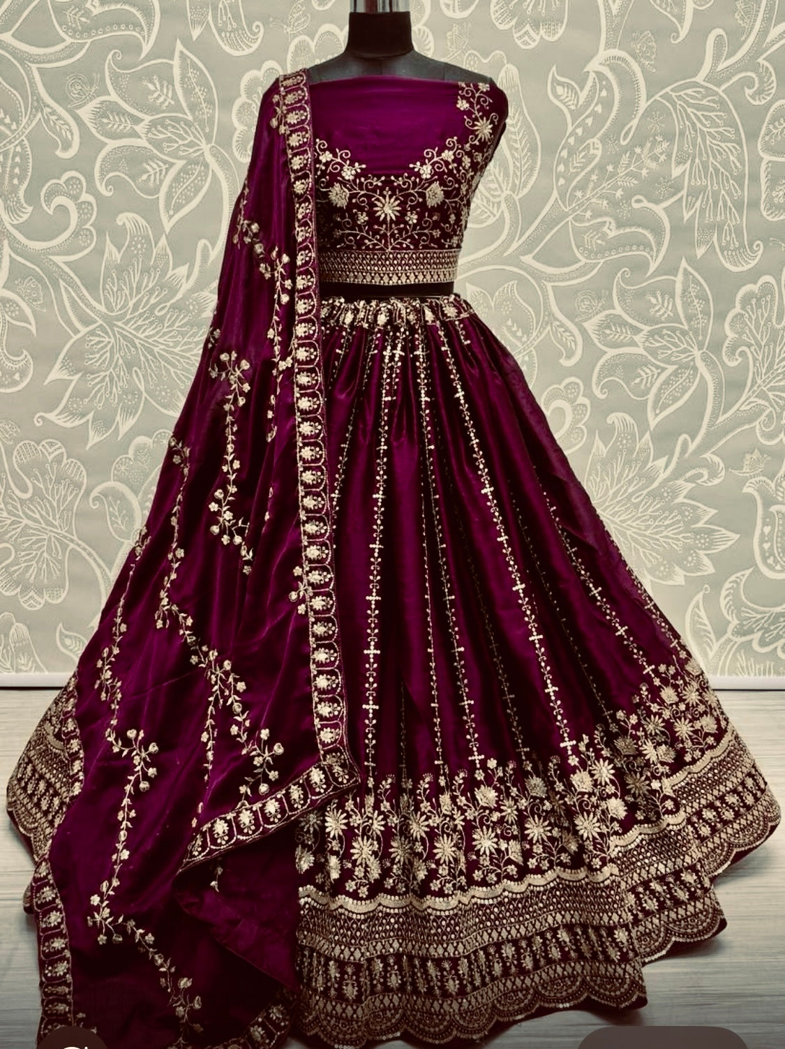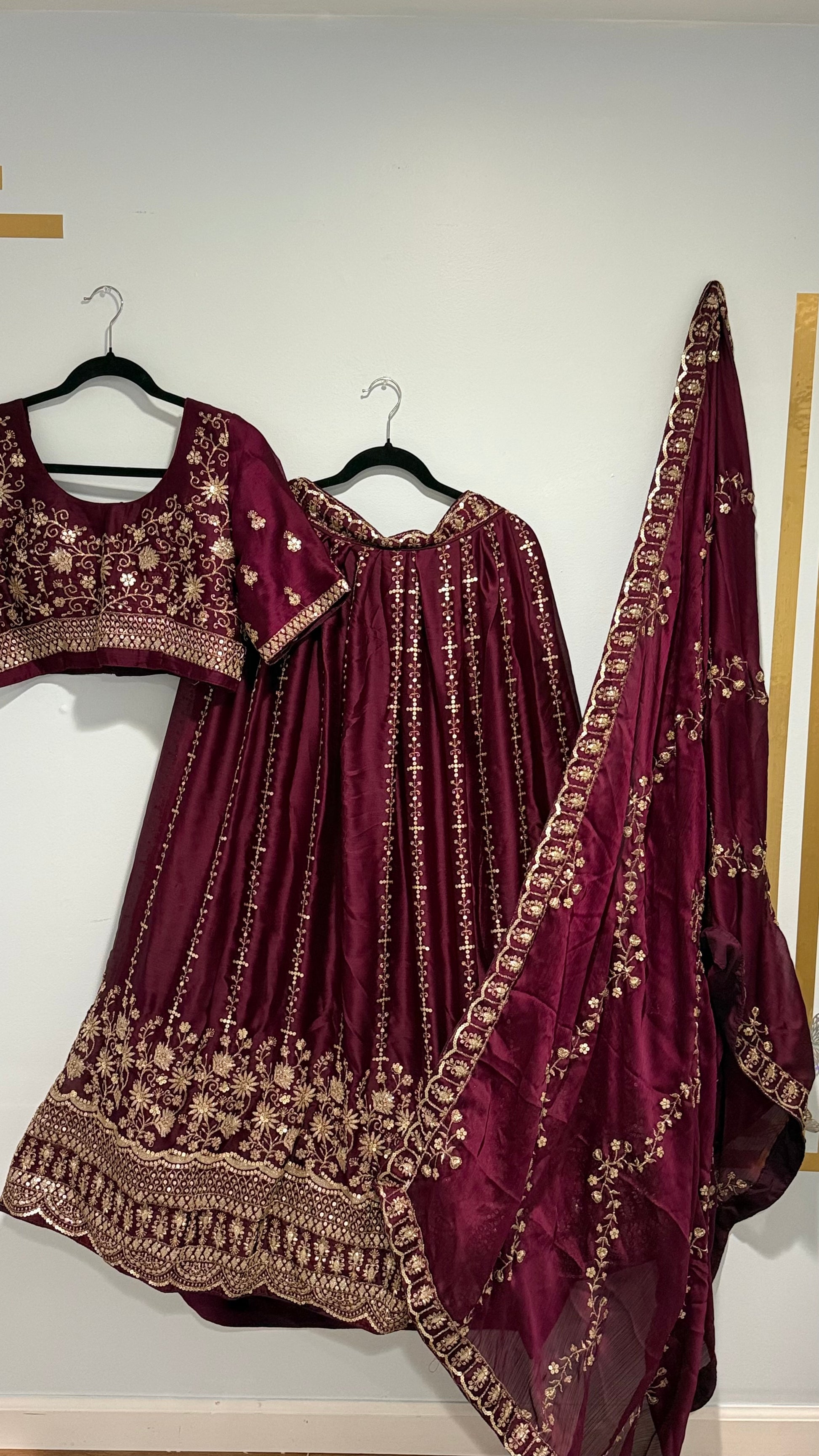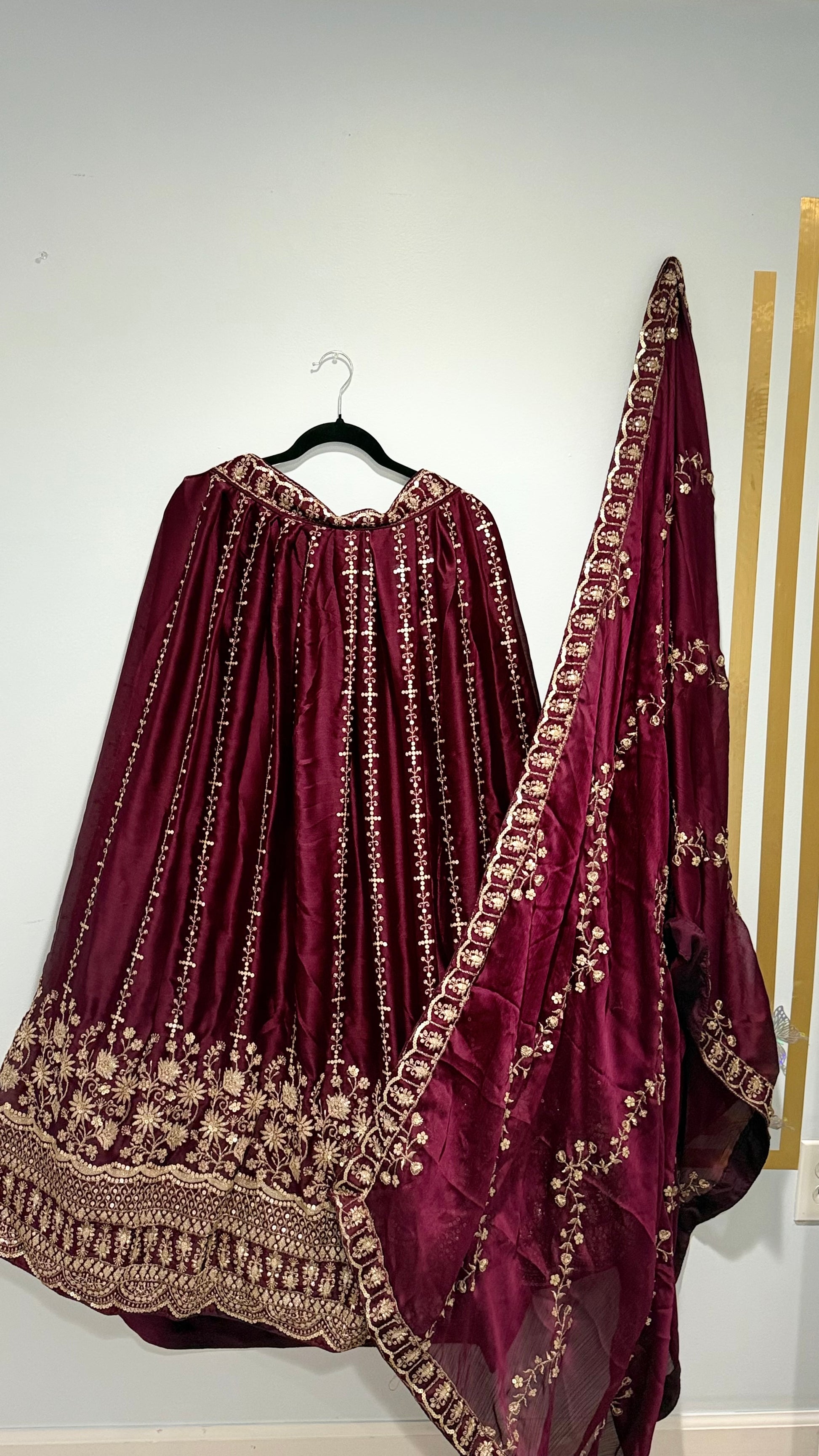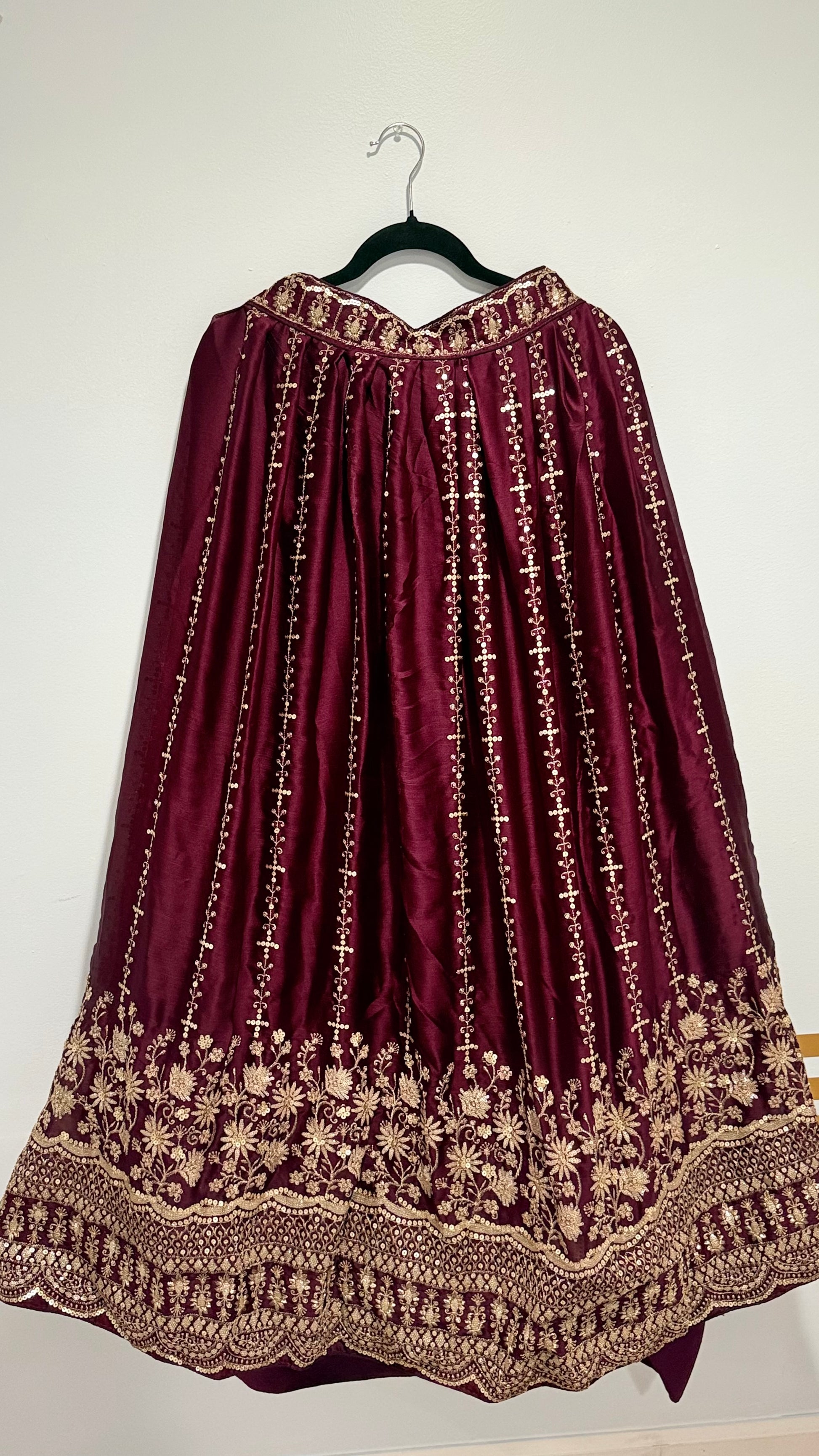 Absolutely stunning lehenga! The maroon color is rich and elegant, and the chiffon satin fabric feels luxurious. The embroidery is detailed and beautifully done, making it perfect for weddings and festive occasions. Received so many compliments, and it fits wonderfully