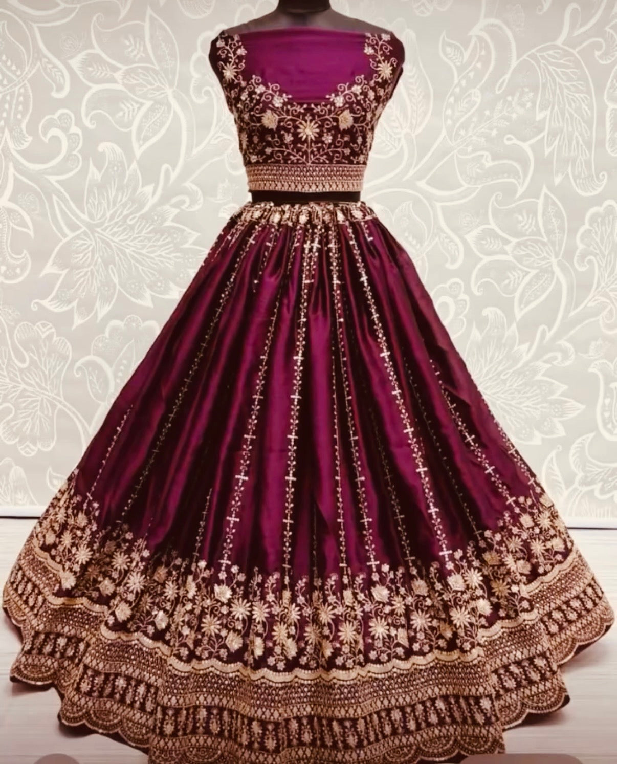 Maroon Chiffon Satin Embroidered Lehenga Set | Bridal & Festive Wear