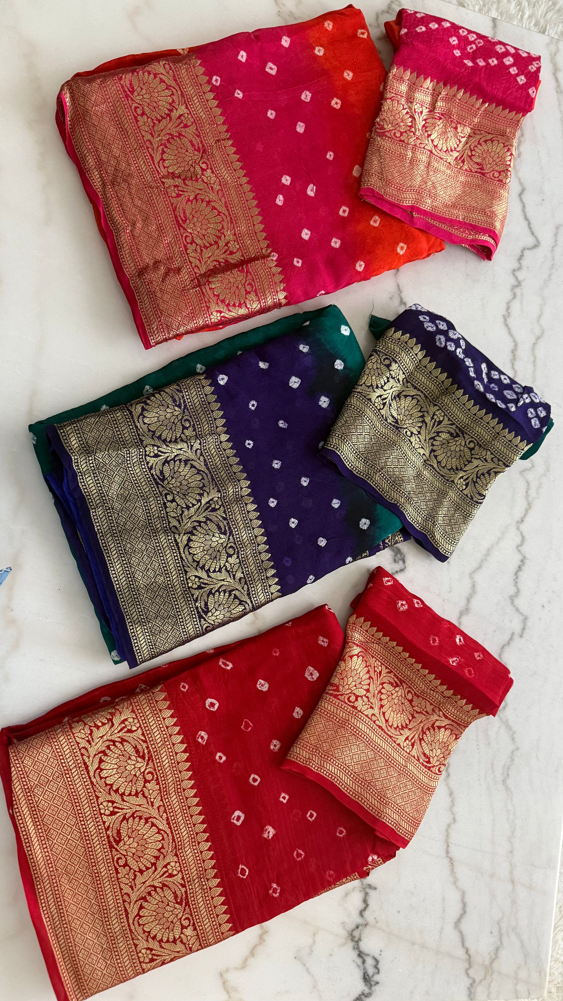 🔸 Blouse Fabric: Matching Bandhej Bandhani