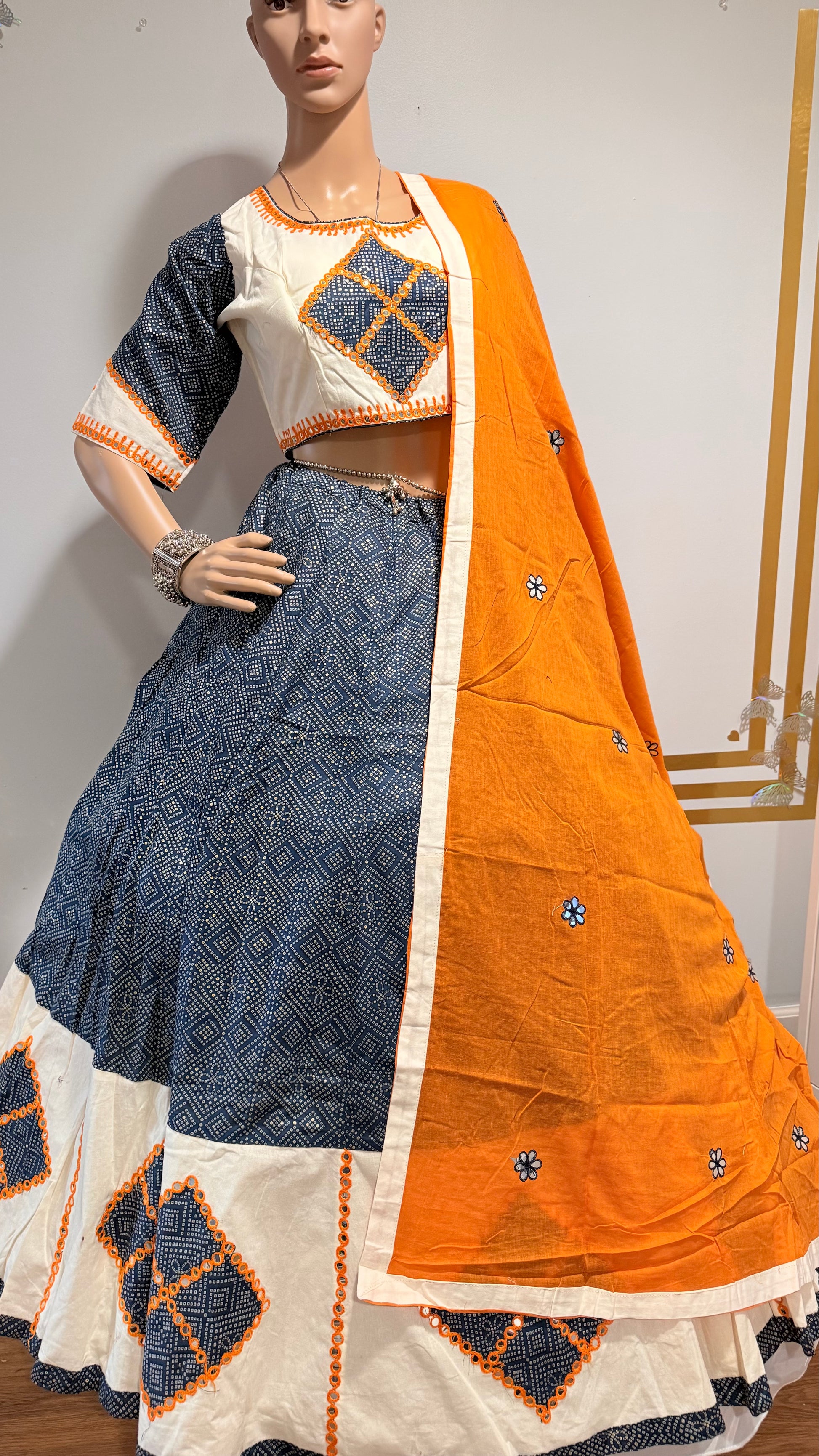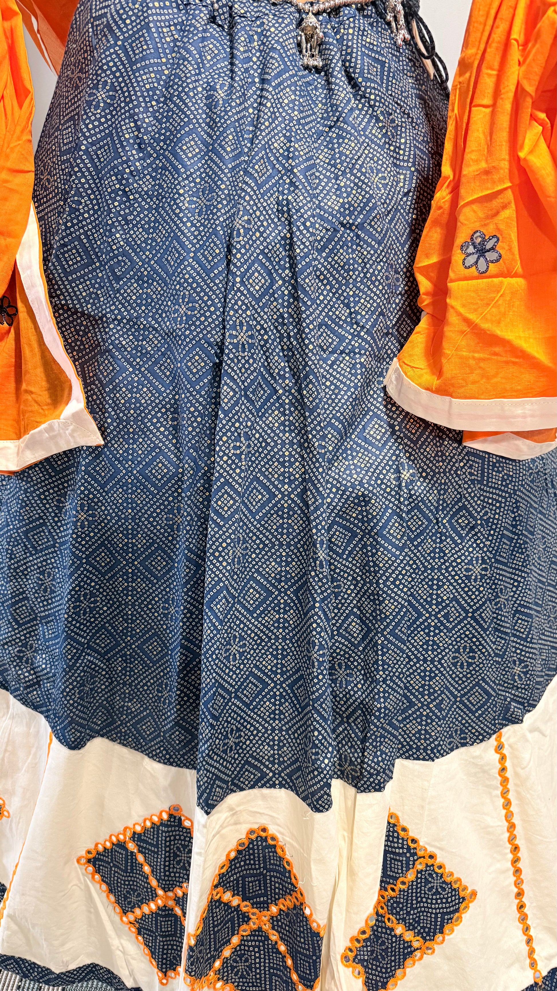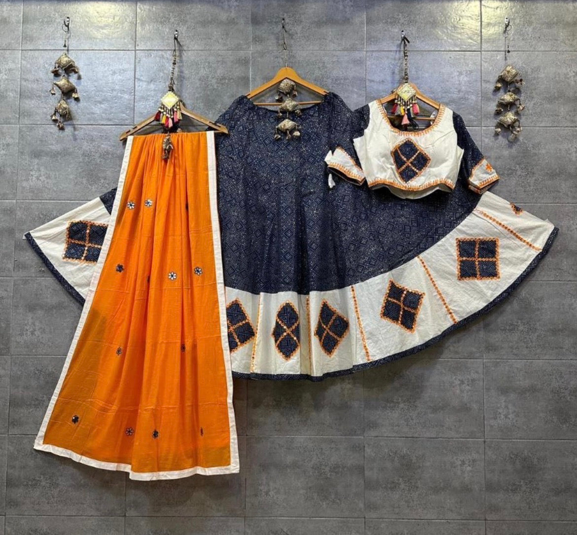 Celebrate Garba nights in comfort and style with this beautifully crafted Muslin Cotton Chaniya Choli. Designed with traditional prints and real mirror work, this set is perfect for Navratri and festive occasions.
