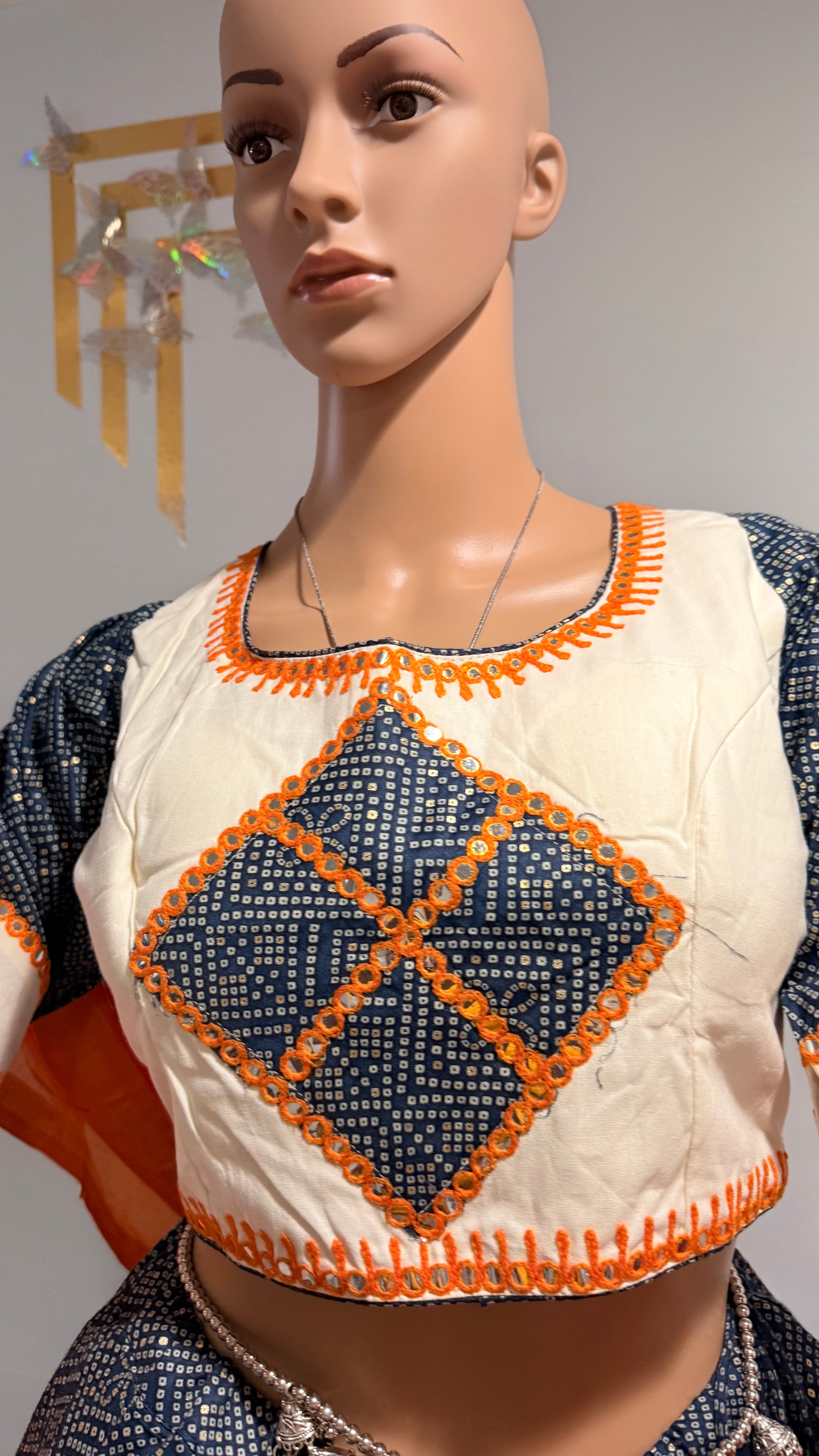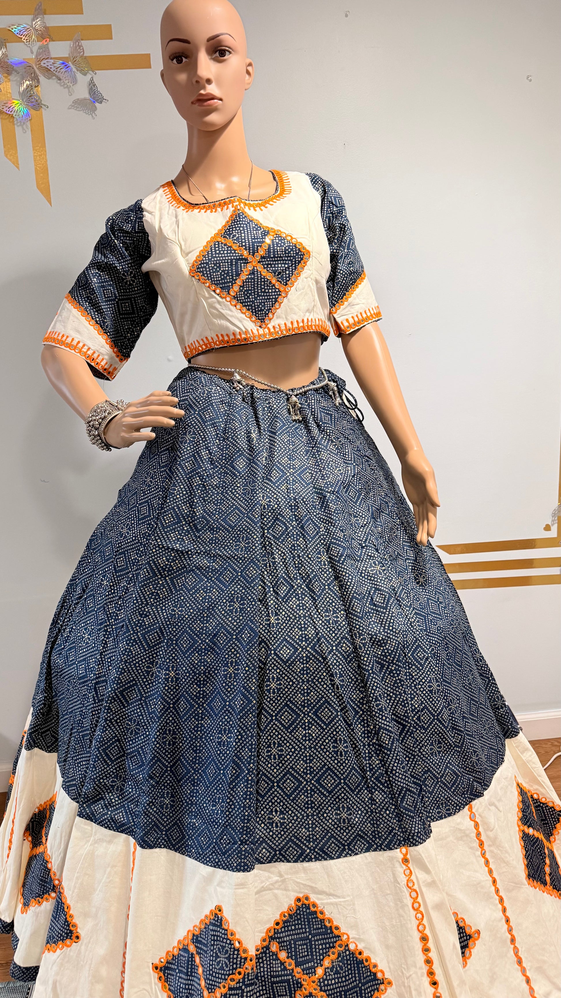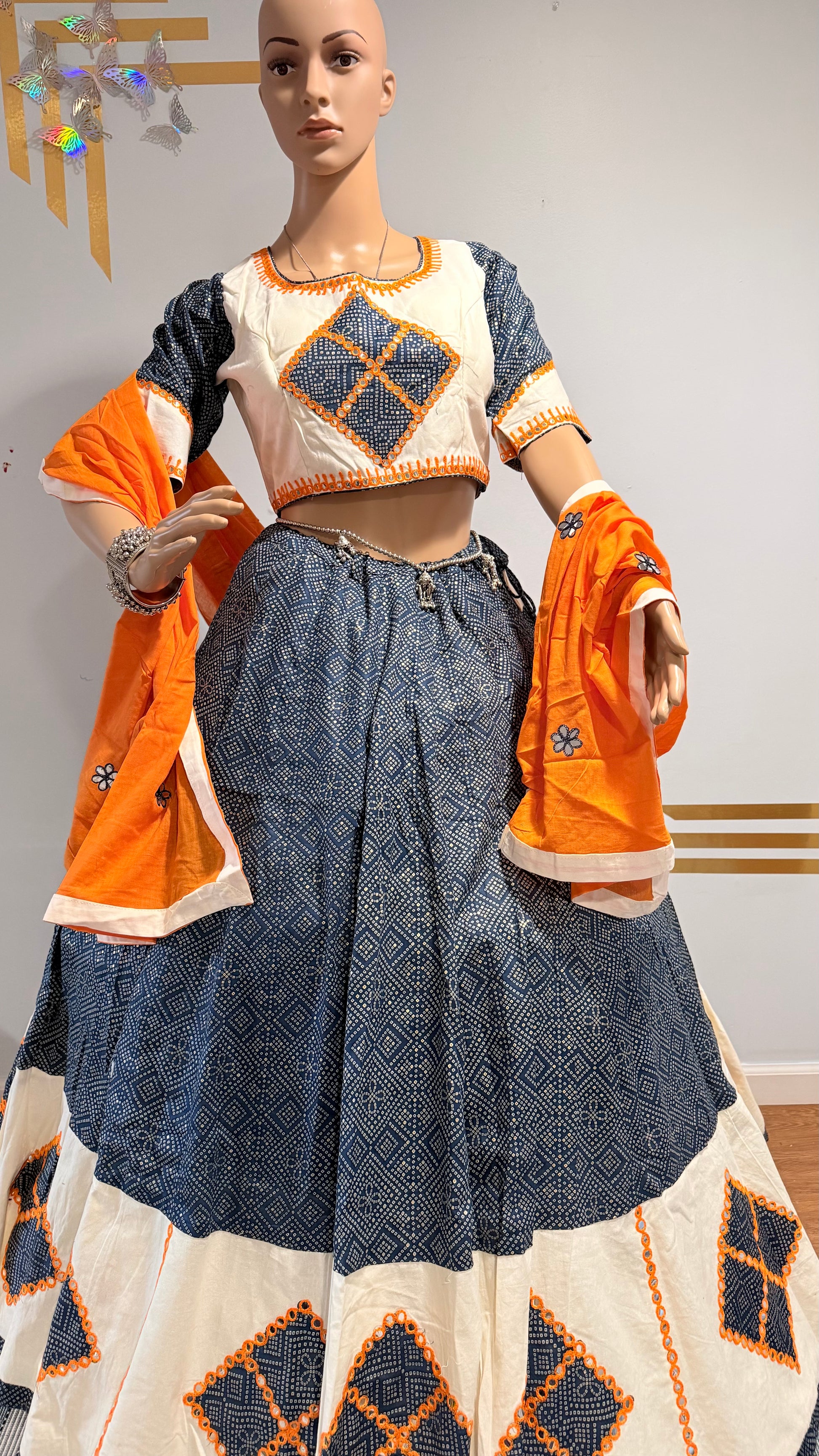 Celebrate Garba nights in comfort and style with this beautifully crafted Muslin Cotton Chaniya Choli. Designed with traditional prints and real mirror work, this set is perfect for Navratri and festive occasions.