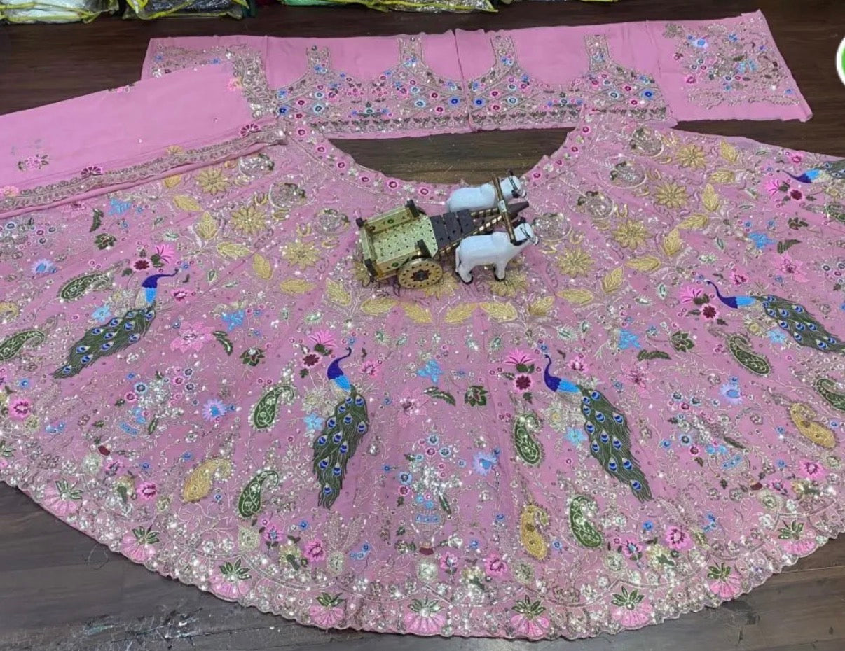 Rajwadi Peacock Embroidered Fox Georgette Lehenga Set