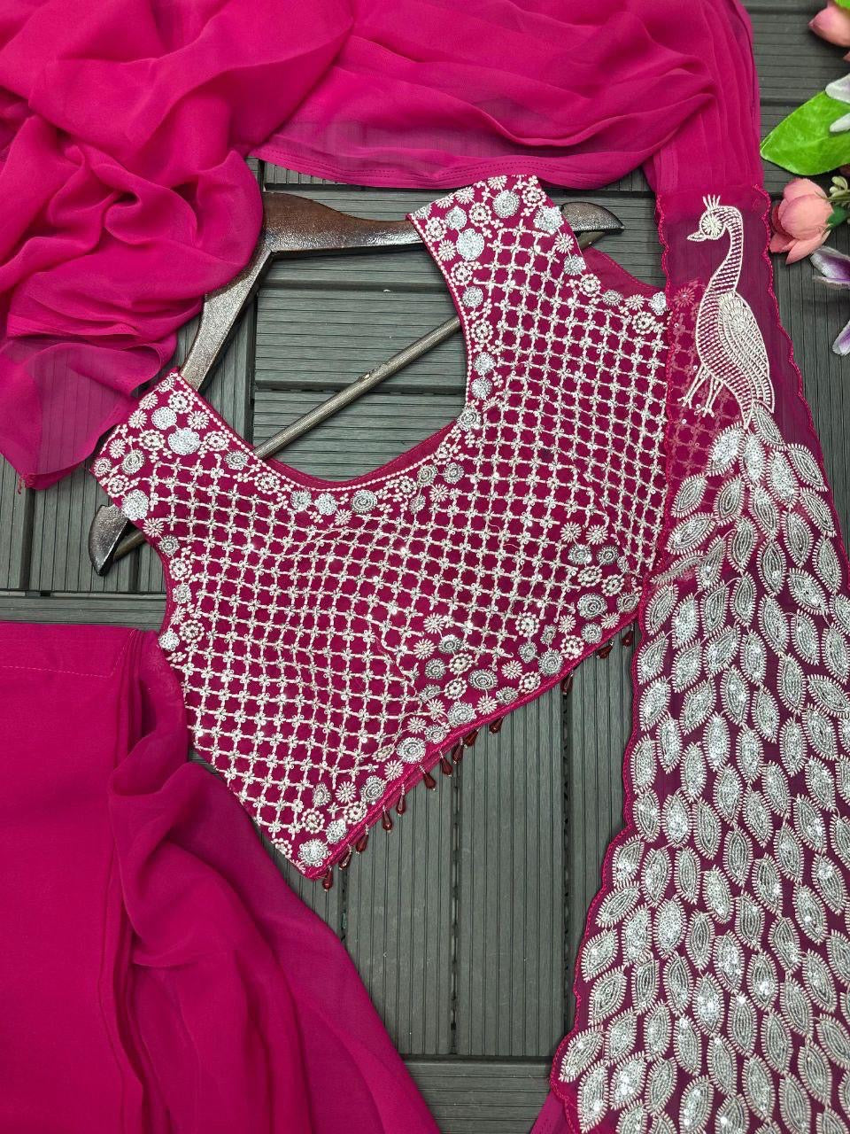 Make a royal entrance with our Ready To Wear Saree, crafted in premium faux georgette and designed with intricate peacock thread and sequins embroidery. This elegant pre-stitched saree offers effortless draping while delivering a heavy festive look — perfect for weddings, Navratri Garba, mehendi, Diwali, pooja, and special family gatherings.