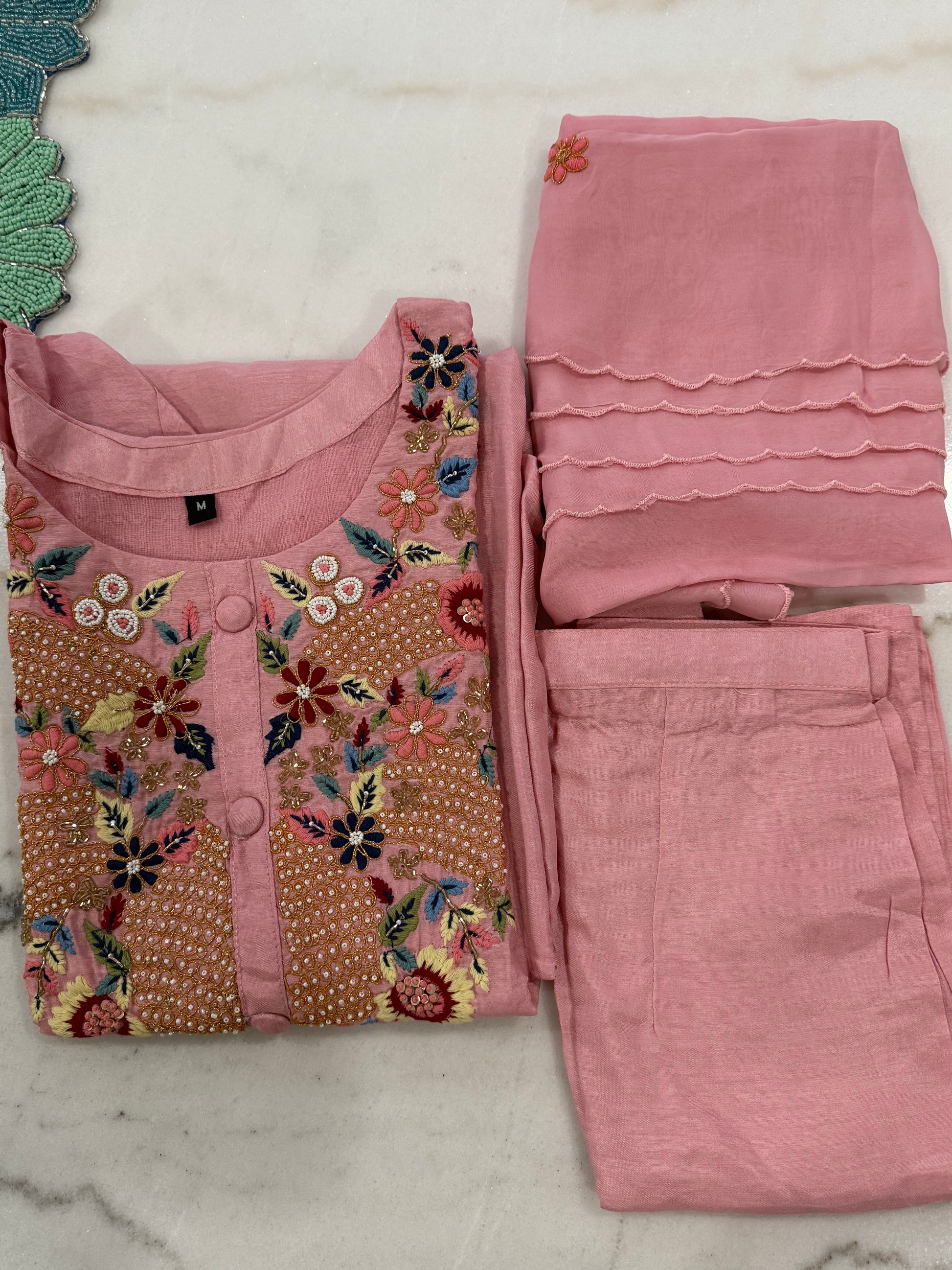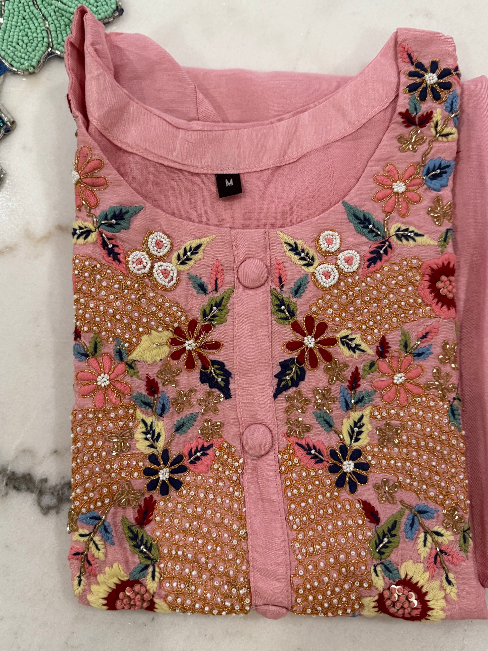 Bloom with elegance in this stunning blush pink salwar suit, featuring intricate hand embroidery with multicolor floral thread and sequin work. ✨ Paired with a soft dupatta and comfortable pants, this set is perfect for summer gatherings, festive celebrations, or everyday grace. 💖